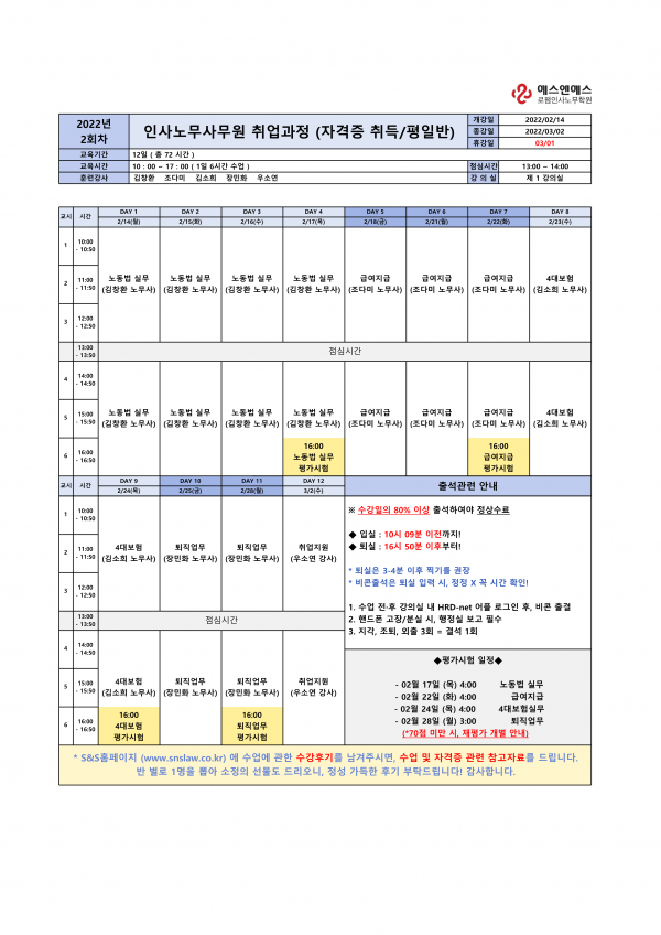 [2022.02.14 개강] 인사노무사무원 취업과정 (평일반)