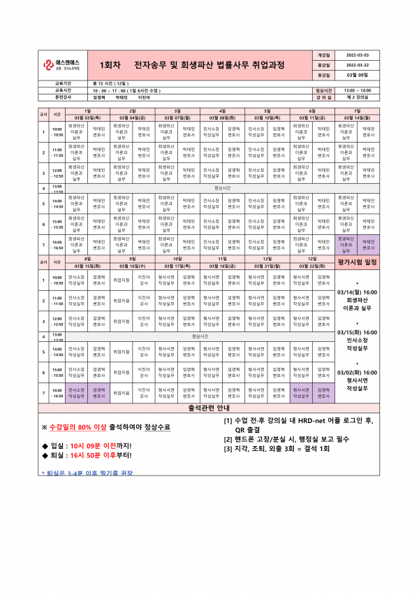 [2022.03.03개강] 전자송무 및 회생파산법률사무 취업과정