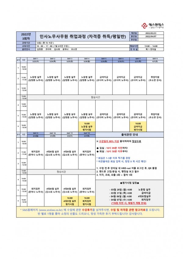 [2022.03.23 개강] 인사노무사무원 취업과정 (평일반)