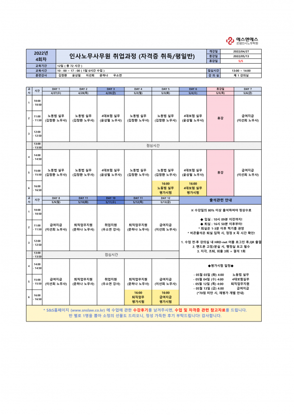 [2022.04.27 개강] 인사노무사무원 취업과정 (평일반)