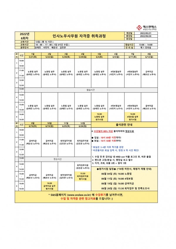 [★2022.05.21 개강] 인사노무사무원 자격증 취득과정 (주말반)
