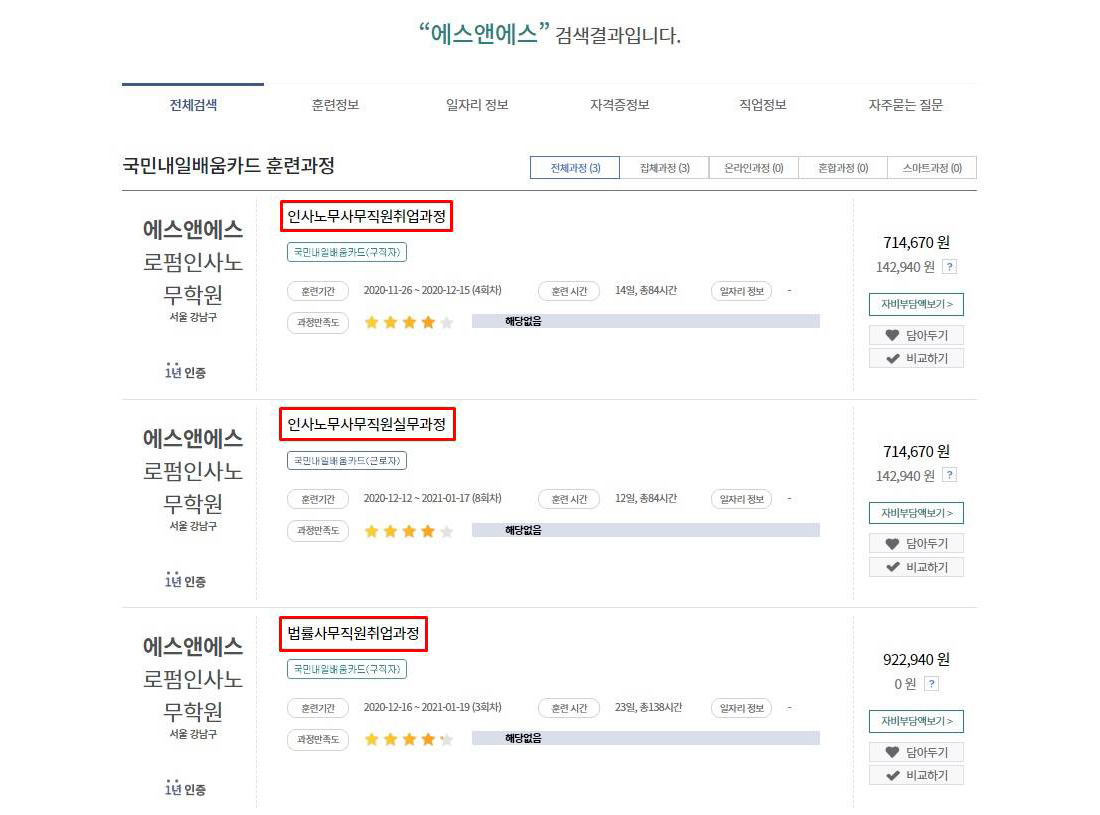 에스앤에스 로펌인사노무학원 방문하셔서 자비부담금액 결제 완료 하시면 수강신청이 완료됩니다.