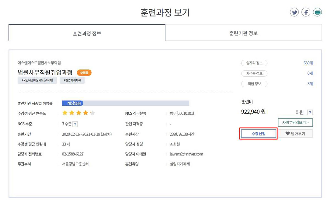 신청을 원하는 훈련과정을 클릭합니다.